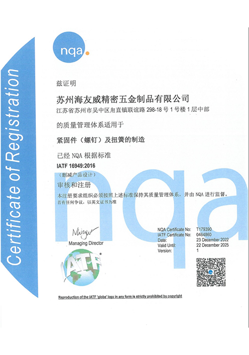 苏州海友威精密五金制品有限公司于2003年投资创建,拥有大量从日本、台湾购进的高精度紧固件设备,以及各种进口的试验、检验设备。并凭借严谨的工艺流程,优质的服务理念,丰富经验的专业技术人员,配套欧、美、日等大型......